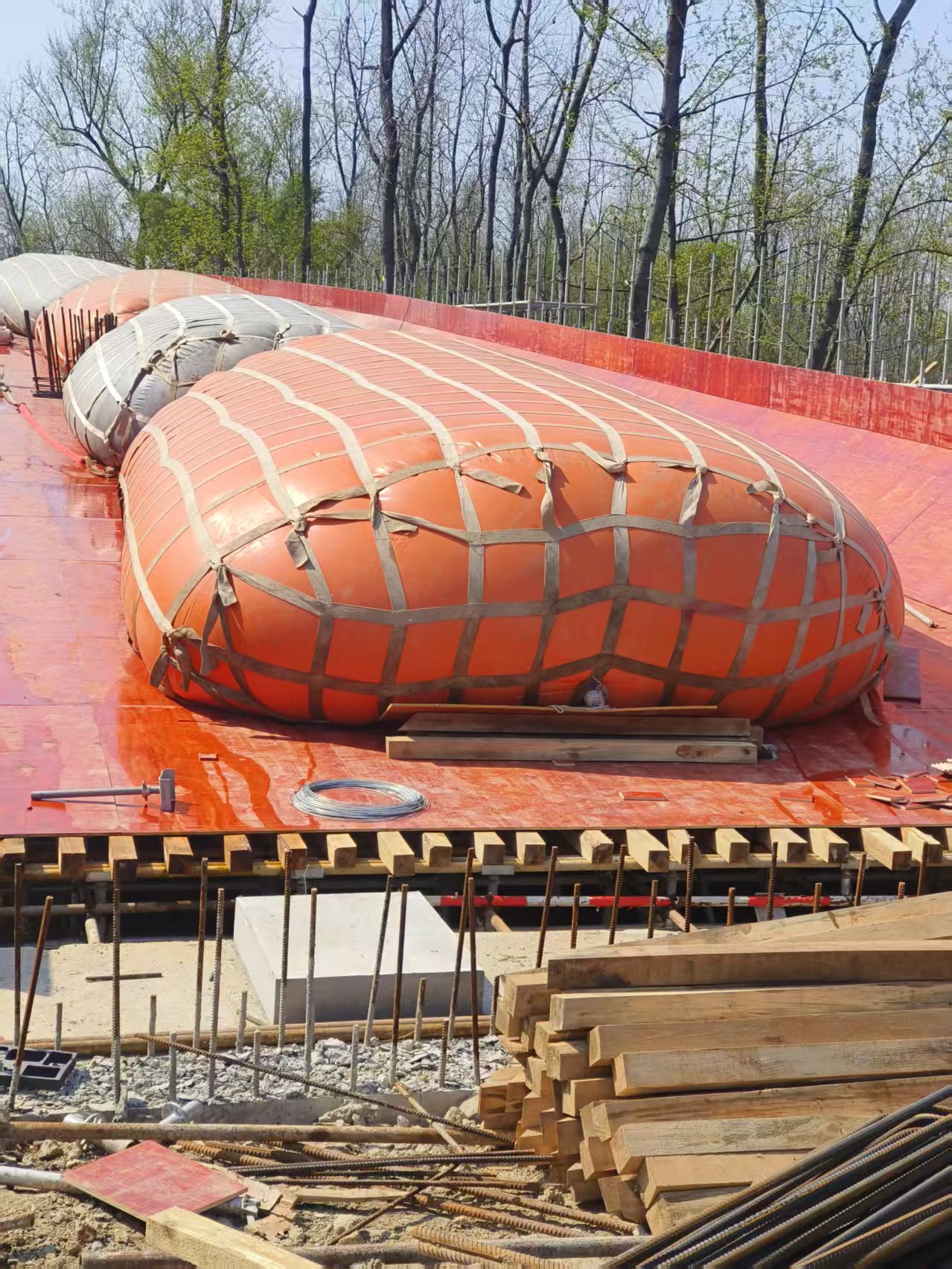 武汉速安达桥梁预压现场在桥梁建设中,软土地基的处理一直是个难题。传统的预压方法不仅耗时长、成本高,还容易受天气和场地限制。而现在,有了桥梁预压水袋,这些问题迎刃而解!桥梁预压水袋采用高强度环保材料制成,通过注水加载的方式对软土地基施加压力,加速地基固结,显著提高承载力。它的优势显而易见:施工简便:只