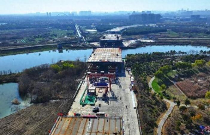 大桥多轮次顶推跨过南淝河